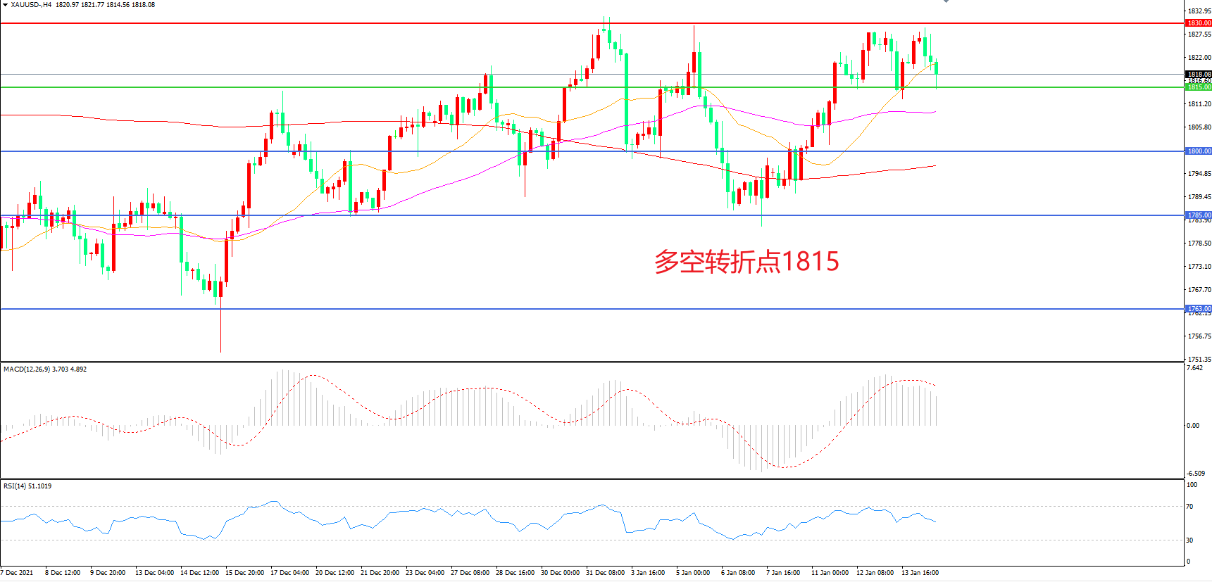 交易策略:在1815.00之上看涨,目标1830.00       1845.00