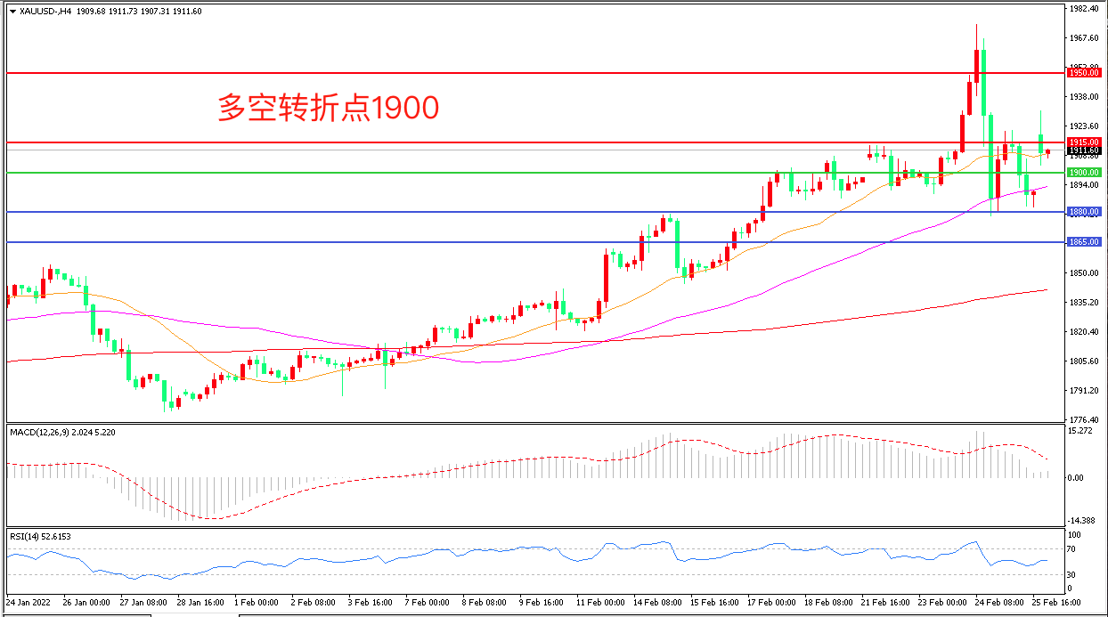 备选策略:在1900.00之下看跌,目标1880.00 1865.00