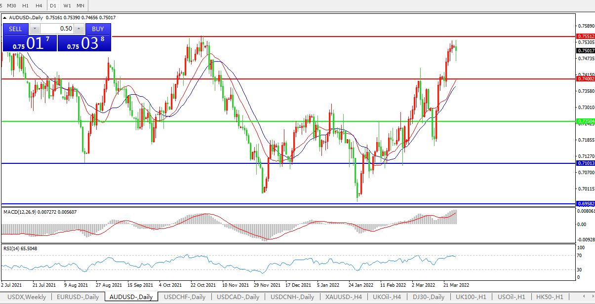 压制位:0.7400    0.7550