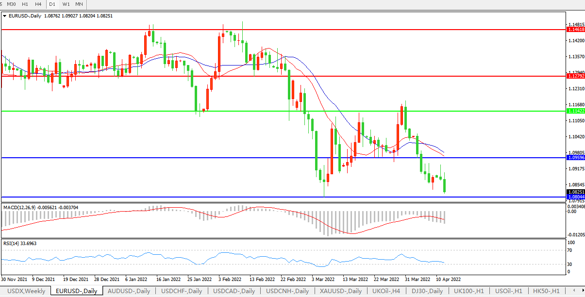 欧元兑美元下跌0.52%,至1.0825,因市场将注意力转移到定于本周晚些时候举行的欧洲央行政策会议上,货币市场预期12月前将升息约70个基点。Rai表示,投资者可能会寻找任何欧洲央行将缩减资产购买计划的迹象,该计划可能会为9月升息铺路。