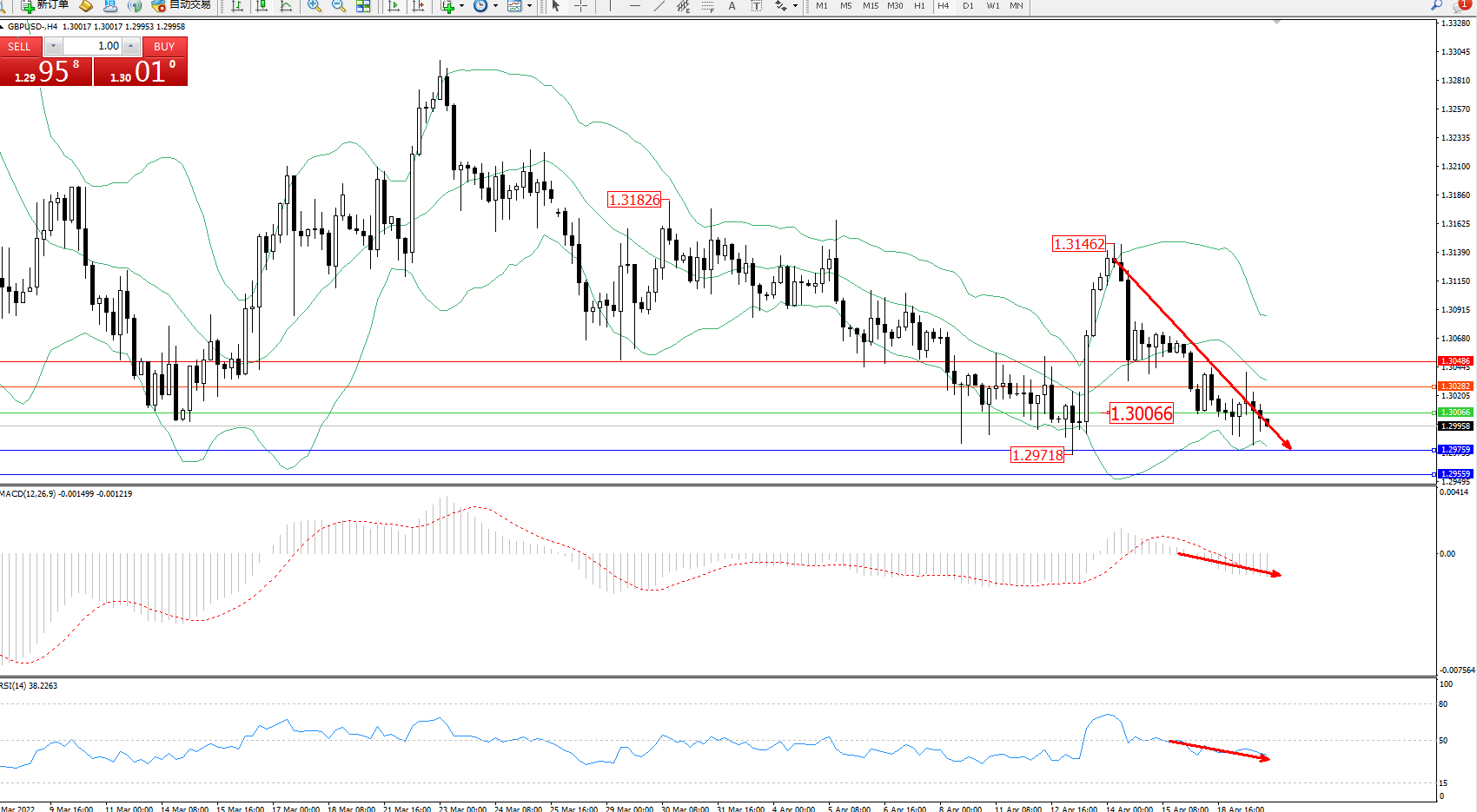 交易策略:1.30066下方看跌,目标1.30282、1.30486