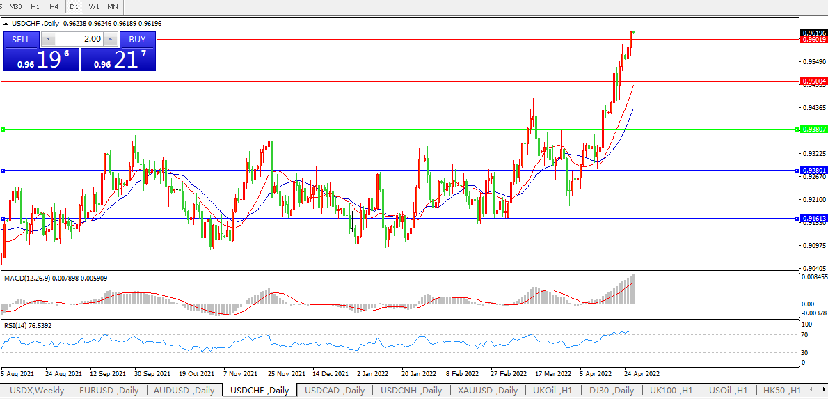 美联储加息板上钉钉,美元兑瑞郎直线拉升