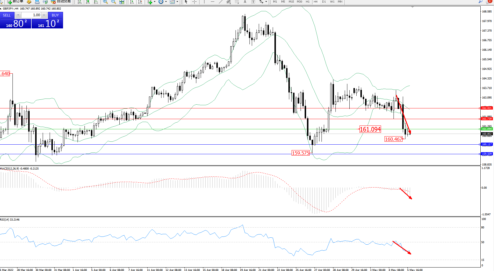 交易策略:161.094下方看跌,目标160.117、159.509