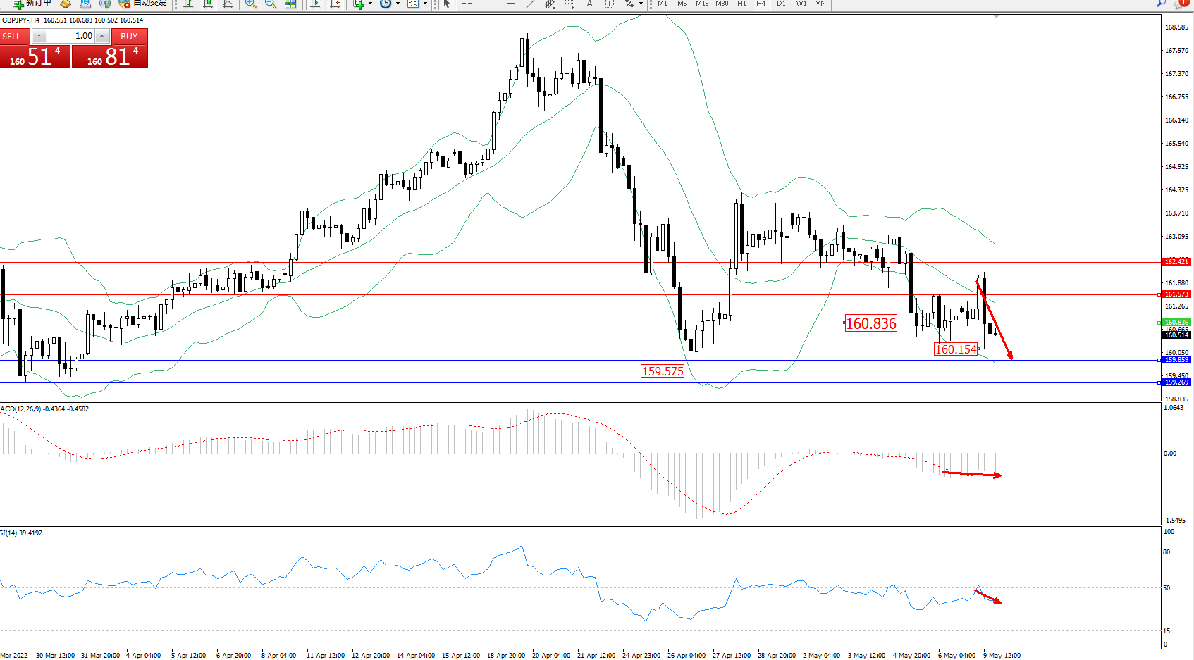 交易策略:160.836下方看跌,目标159.859、159.269
