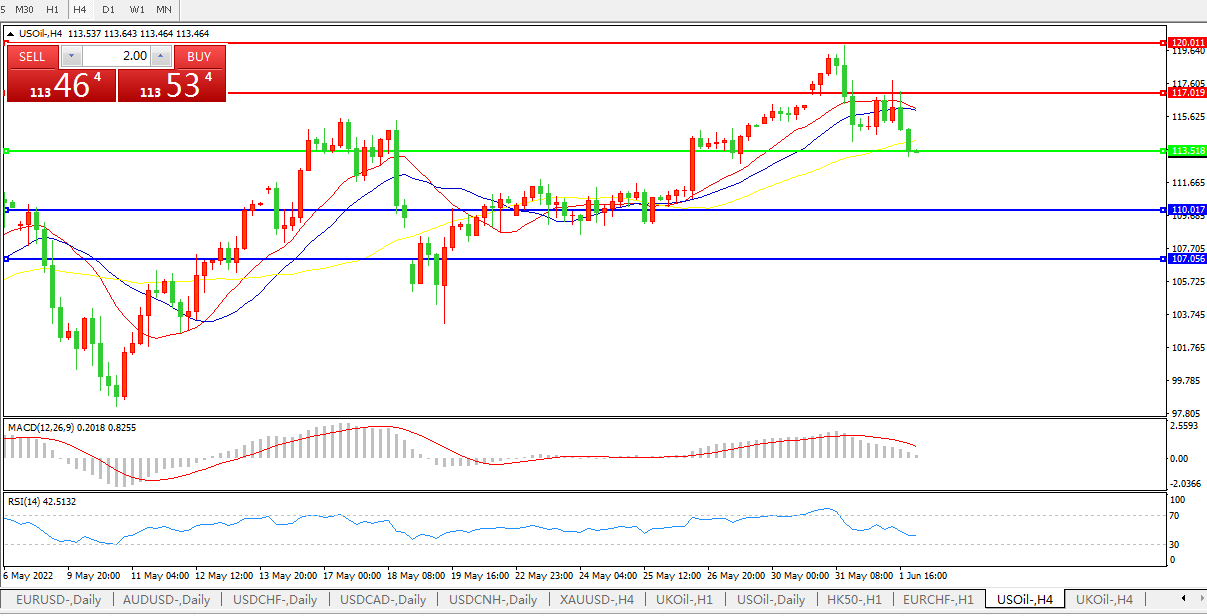 美国原油USOIL 4小时图