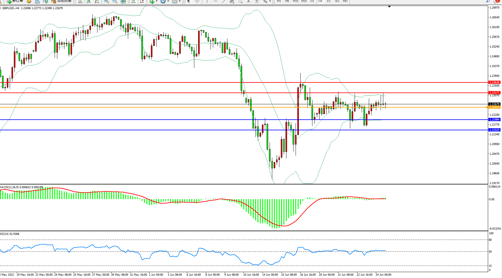 交易策略:1.22535上方看涨,目标1.23177、1.23636