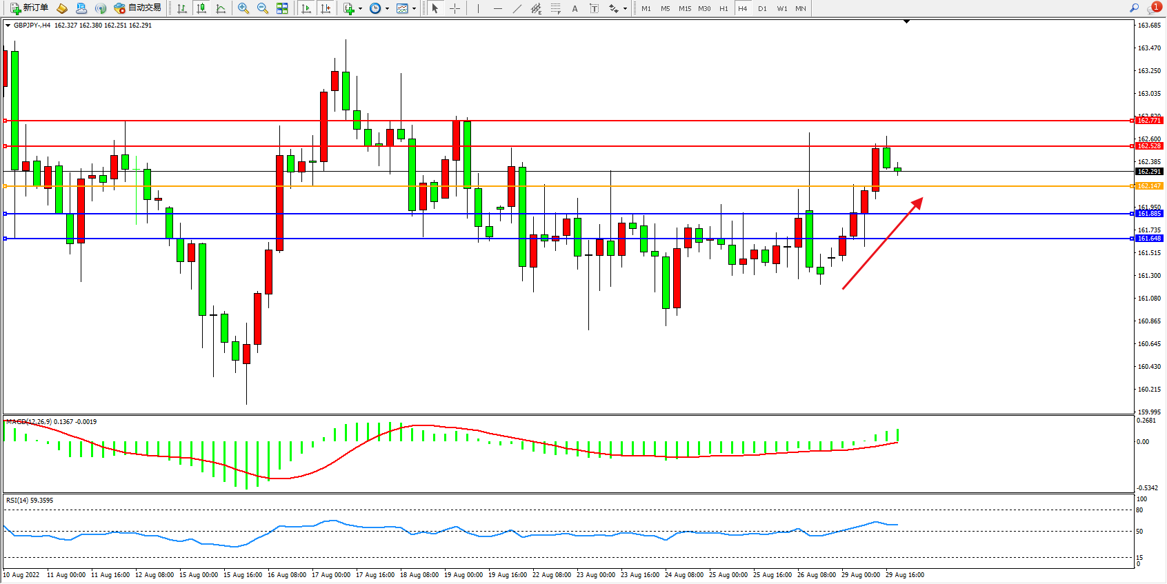 交易策略:162.147上方看涨,目标162.528、162.771