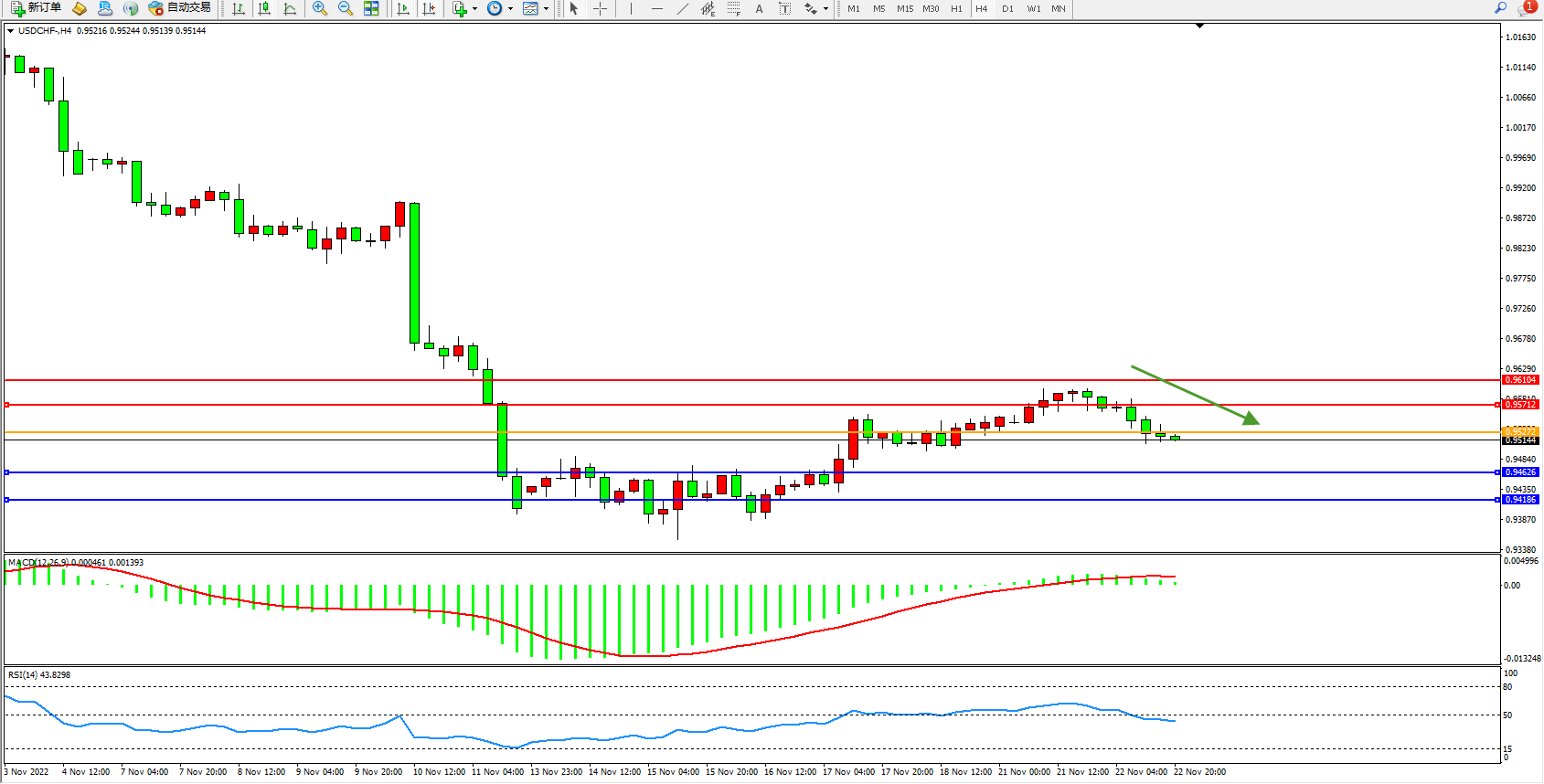 美元瑞郎USDCHF——4小时K线图显示: