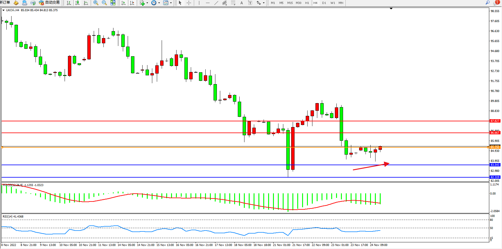 布油UKOil——4小时K线图显示: