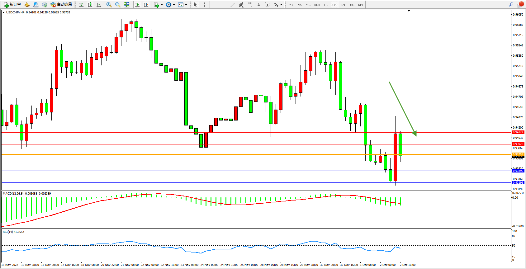 美元瑞郎USDCHF——4小时K线图显示: