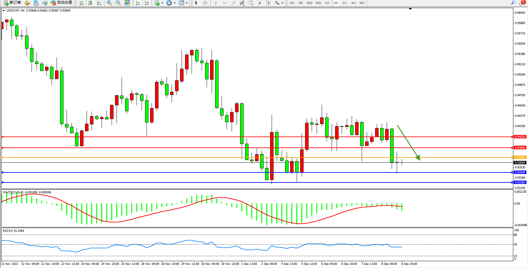 美元瑞郎USDCHF——4小时K线图显示: