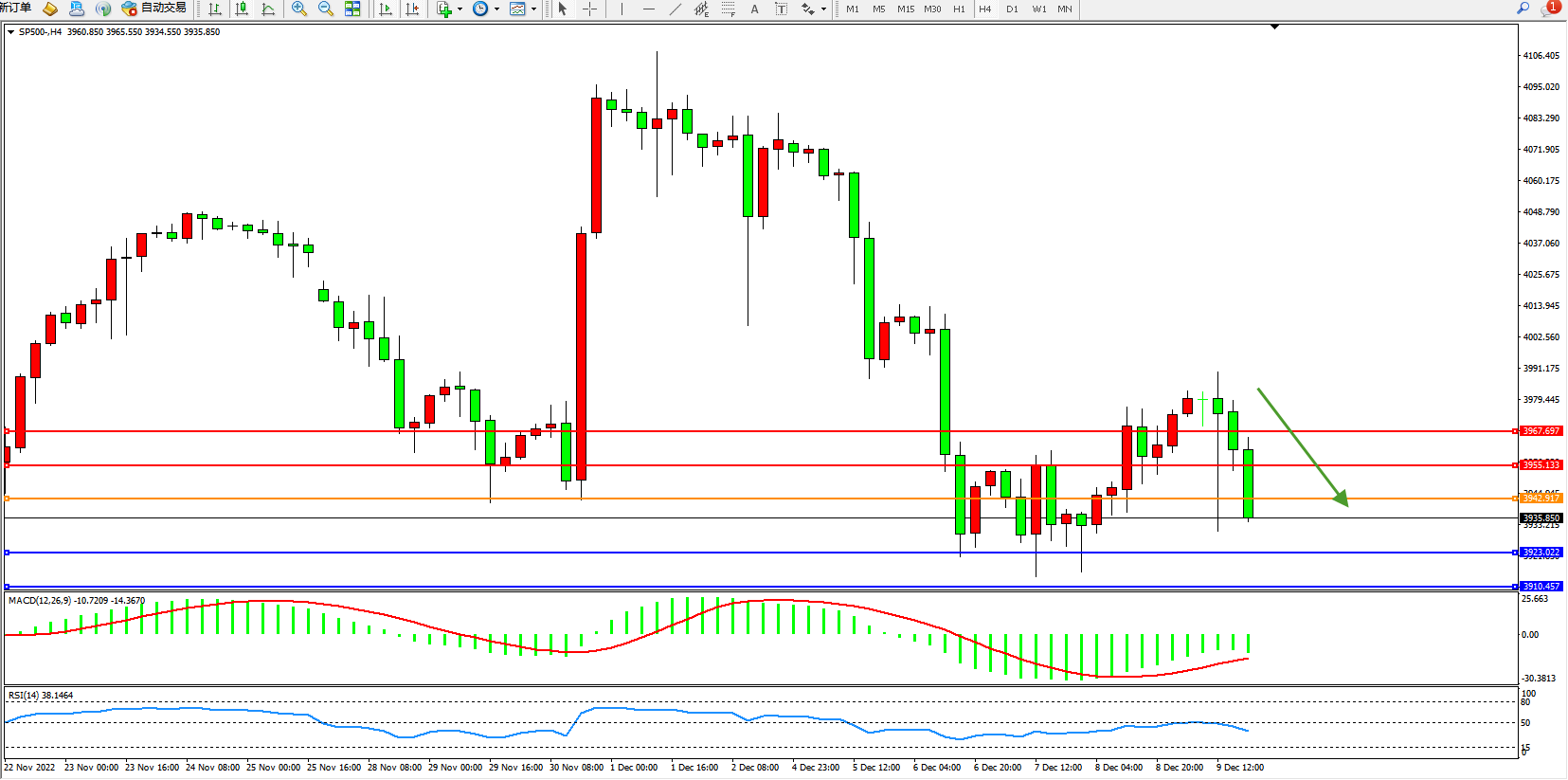 标普SP500——4小时K线图显示:
