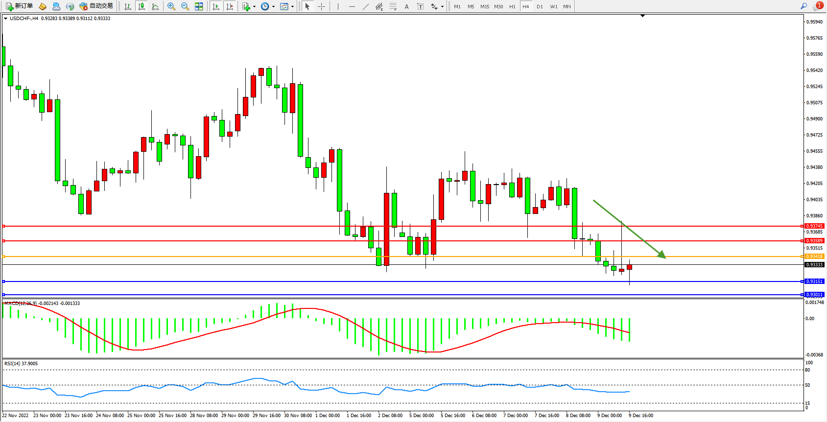 美元瑞郎USDCHF——4小时K线图显示: