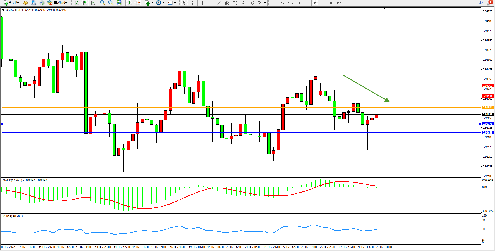 美元瑞郎USDCHF——4小时K线图显示: