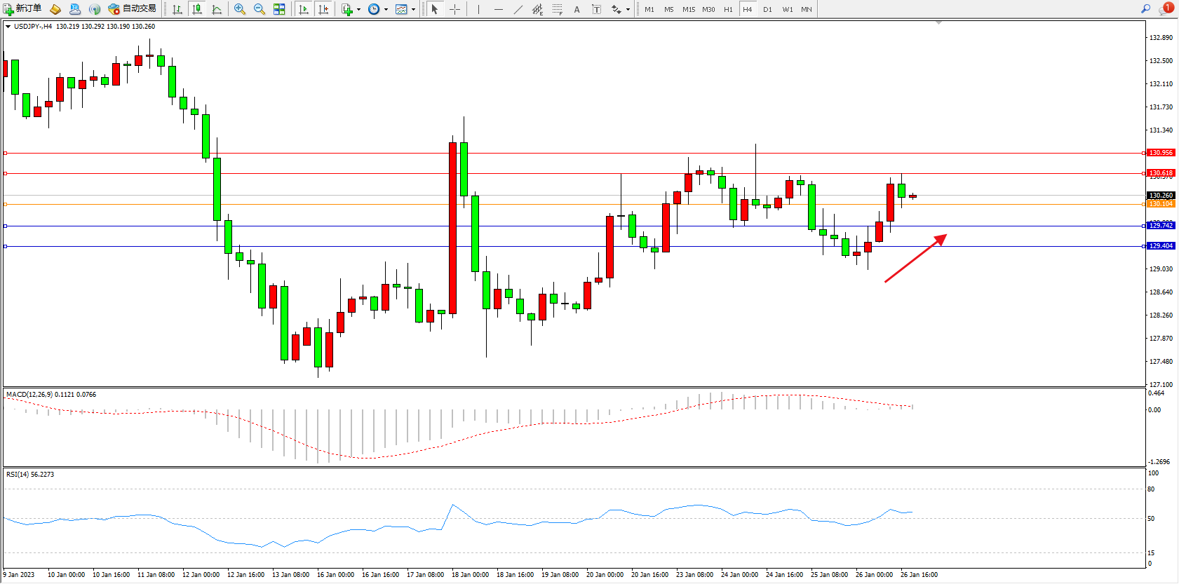 交易策略:130.104上方看涨,目标130.618、130.956