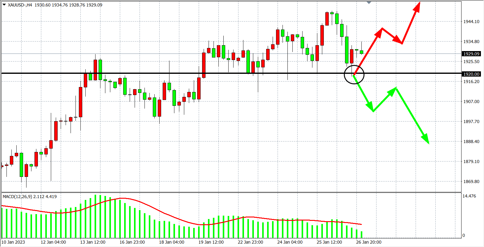 备选策略:在1920.00 之下看跌,目标1900.00         1880.00