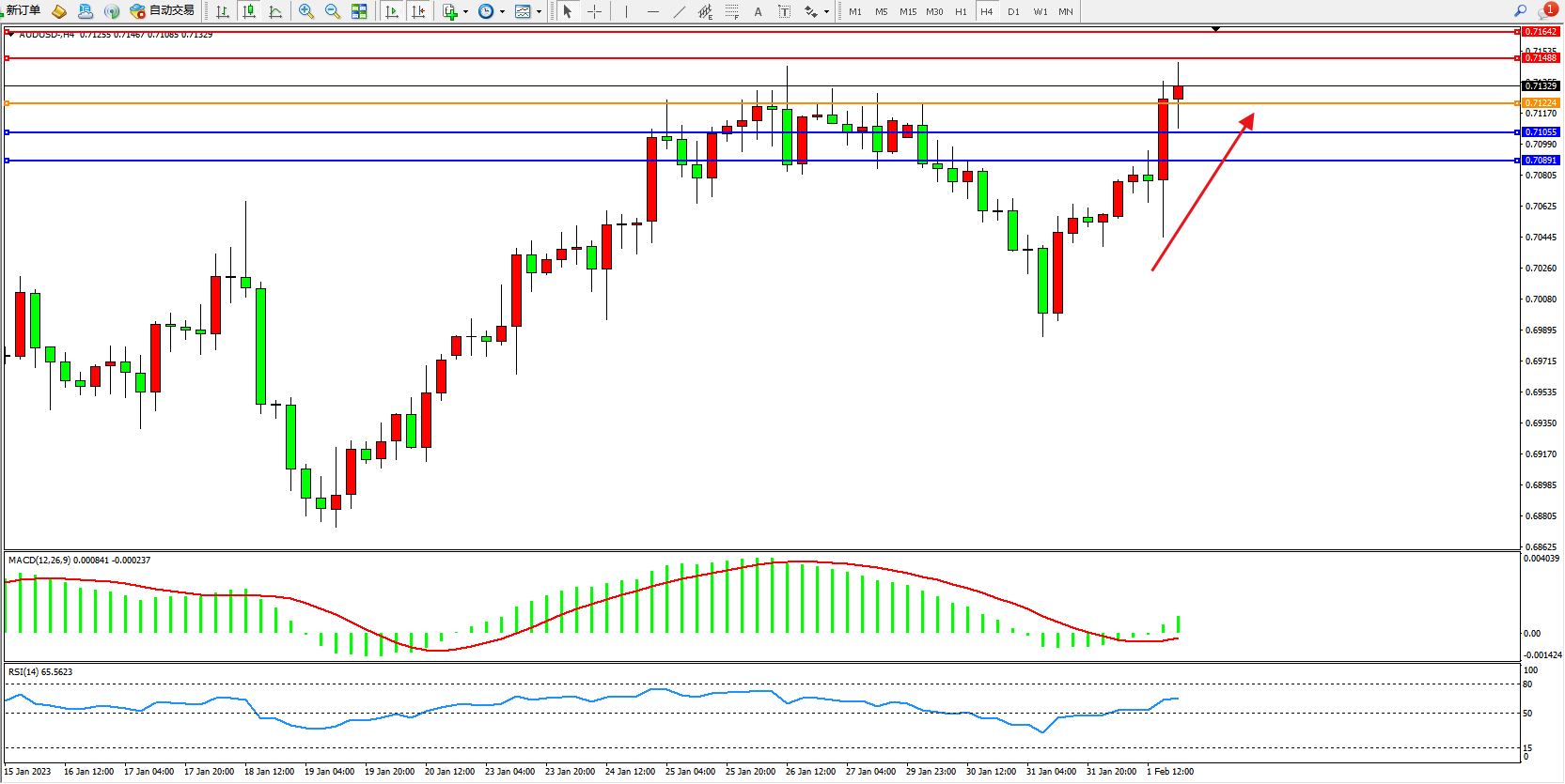 AUDUSD:多头拉升