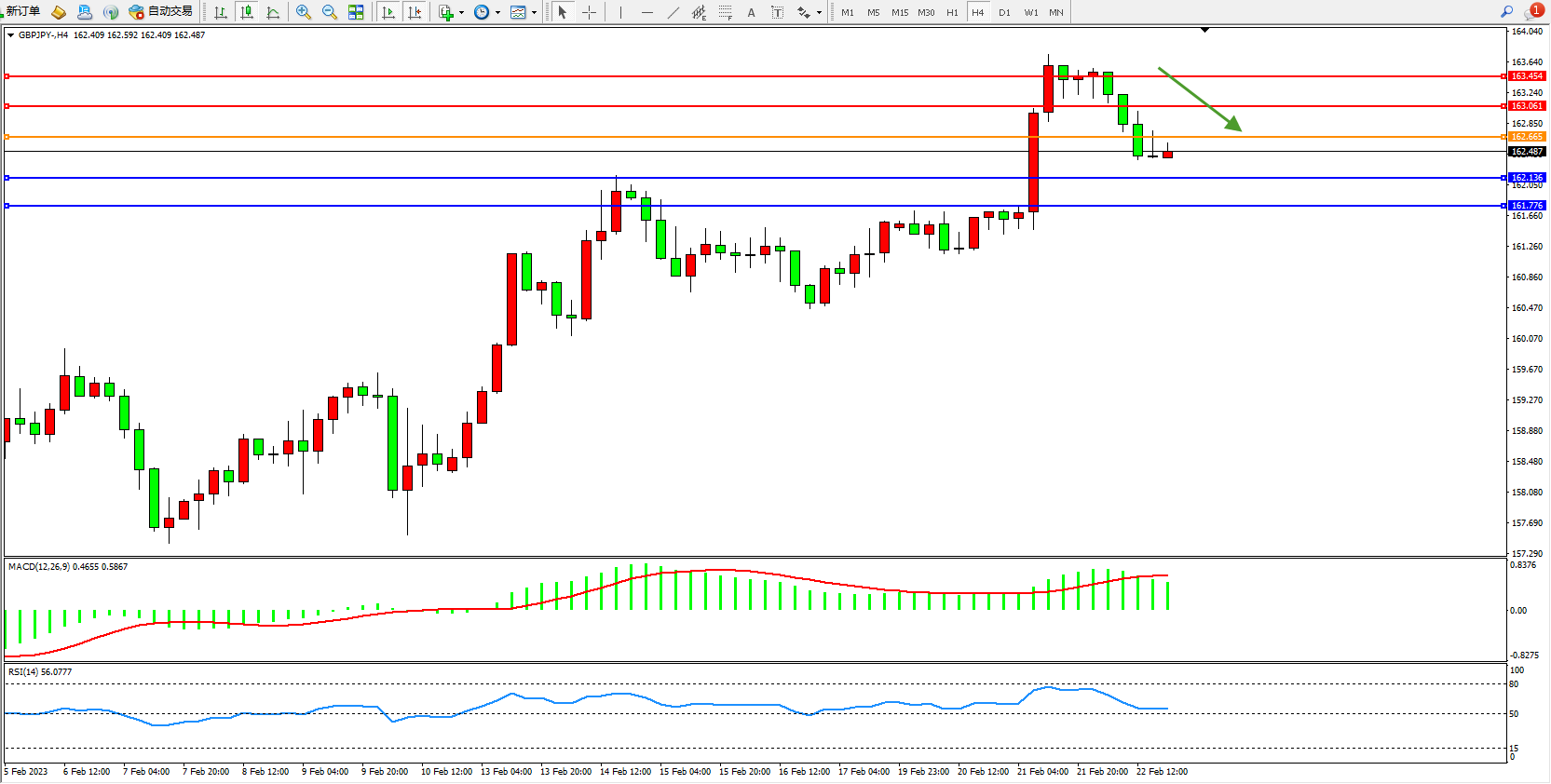 交易策略:162.665下方看跌,目标162.136、161.776
