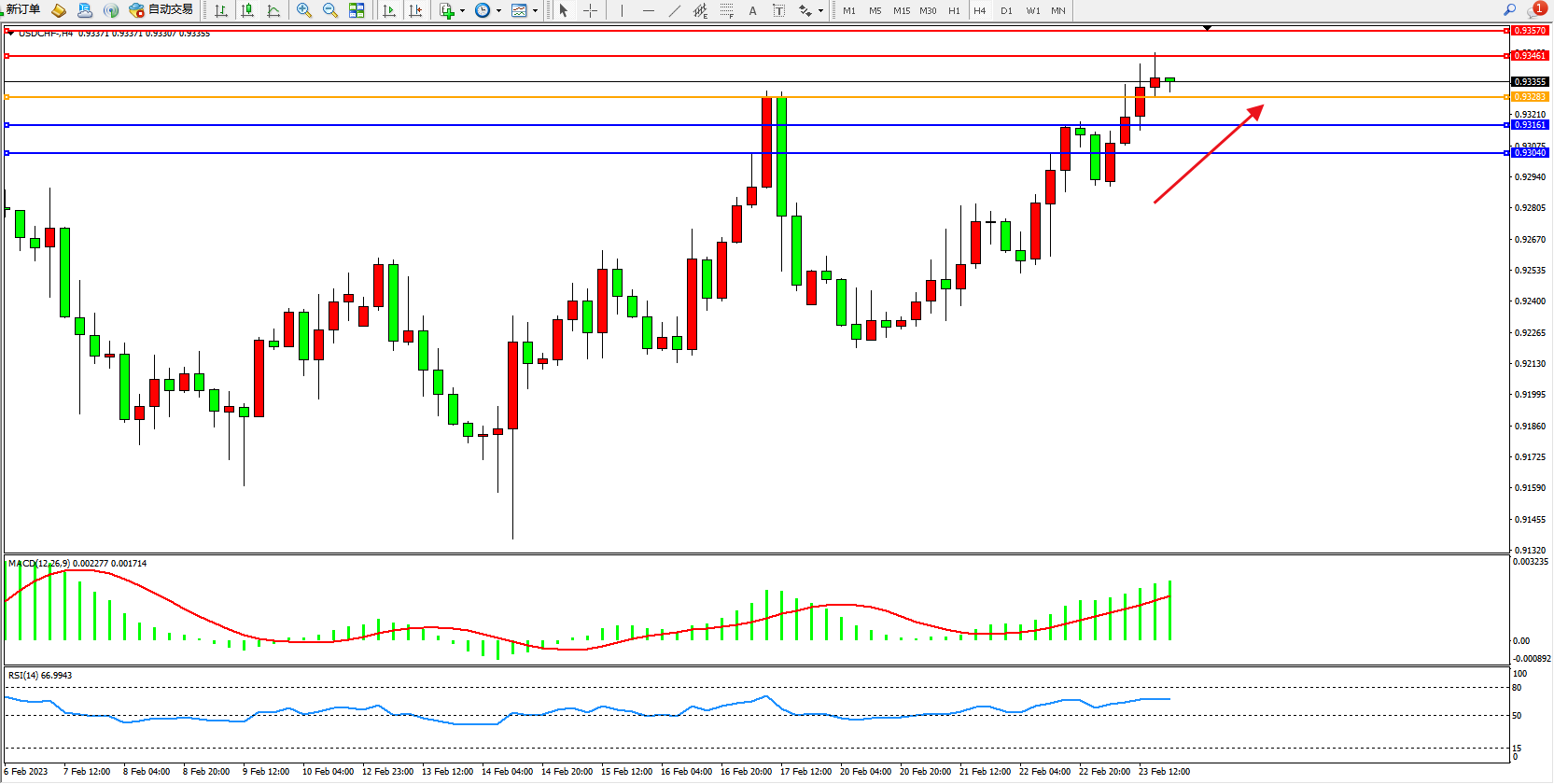 美元瑞郎USDCHF——4小时K线图显示:
