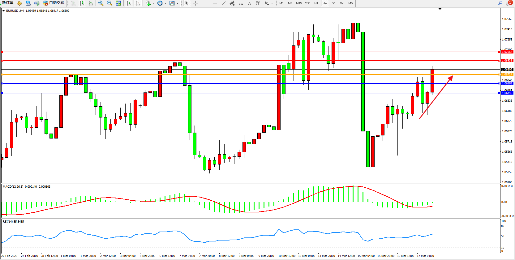 欧元兑美元维持1.06802附近震荡,棘手的通货膨胀为欧洲央行进一步加息提供了理由,但终端利率可能低于此前看到的水平。,欧洲央行将在即将举行的会议上继续加息,目前预测的4.00%的利率峰值存在下行风险。