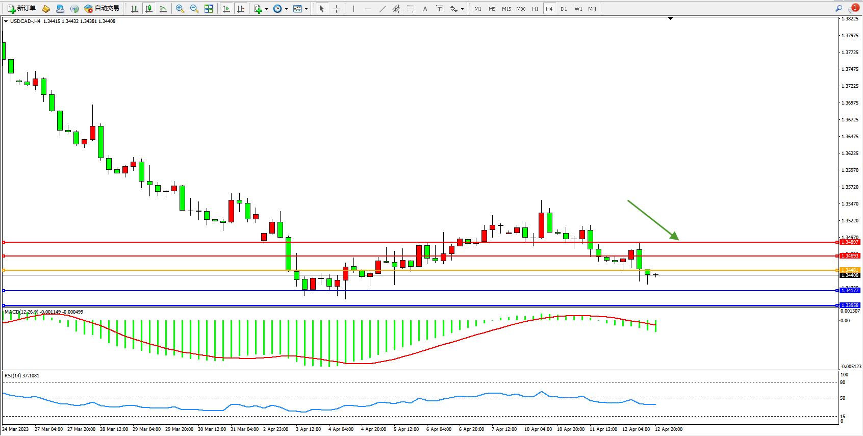 交易策略:1.34481下方看跌,目标1.34177  1.33958