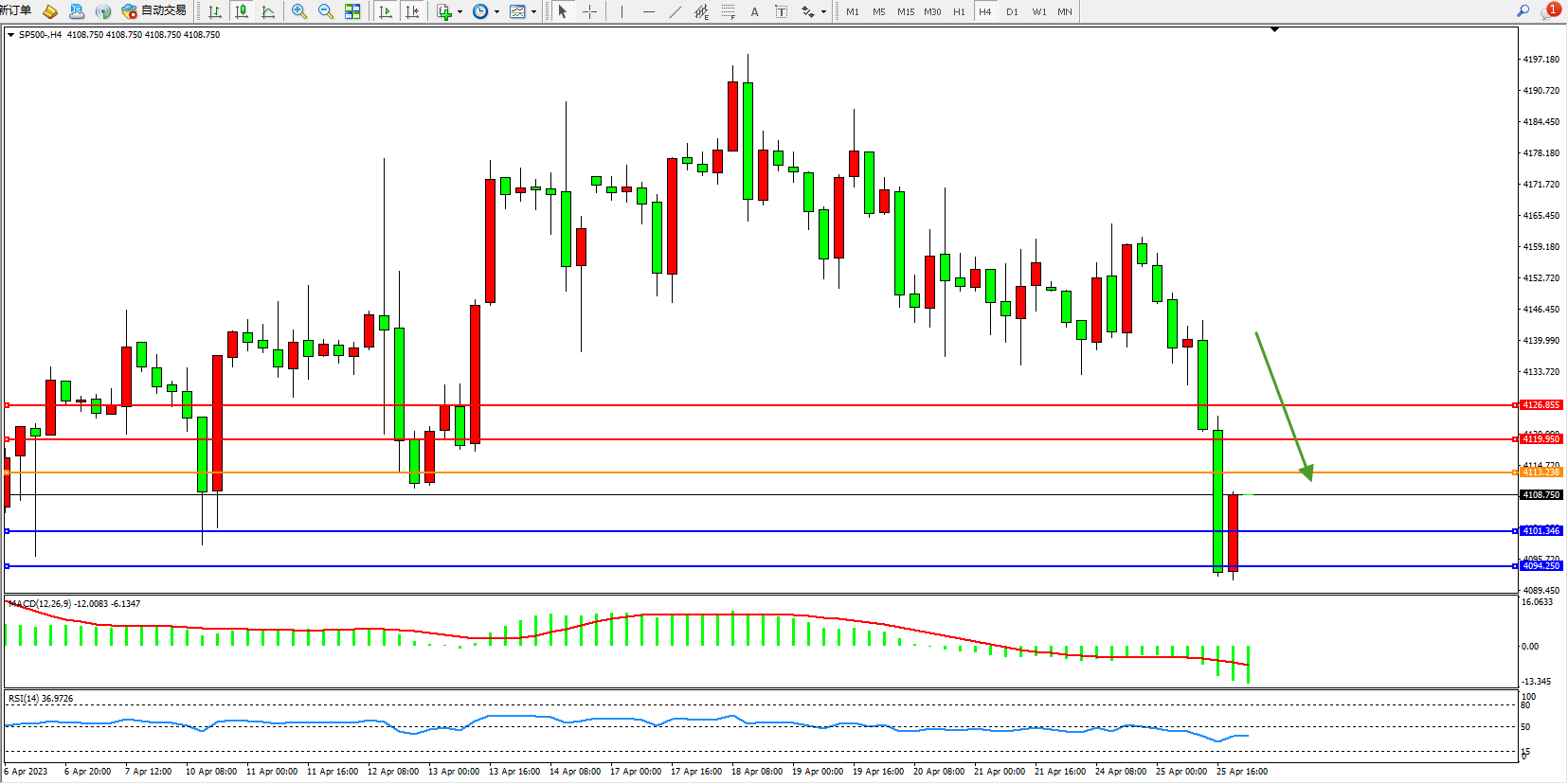 标普500指数4月25日(周二)收盘下跌64.49点,跌幅1.56%,报4072.55点;金融稳定性风险并未完全消退。全球经济担忧情绪重新蔓延到金融市场中,美联储扭转加息进程的预期重新抬升。
