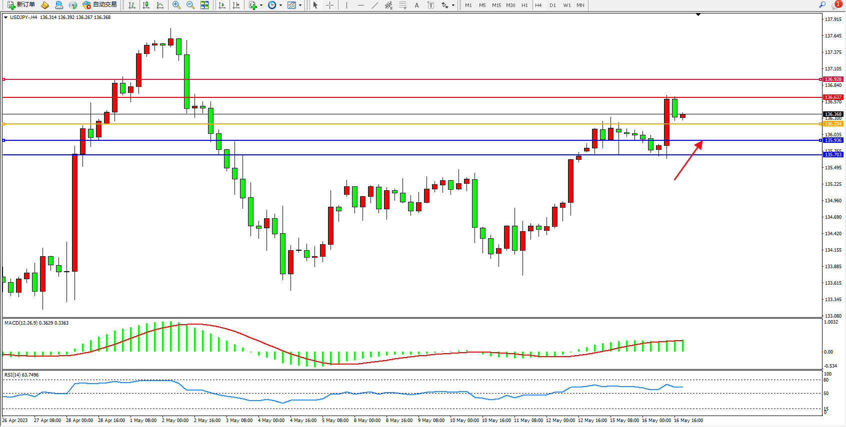 交易策略:136.204上方看涨,目标136.637 136.928