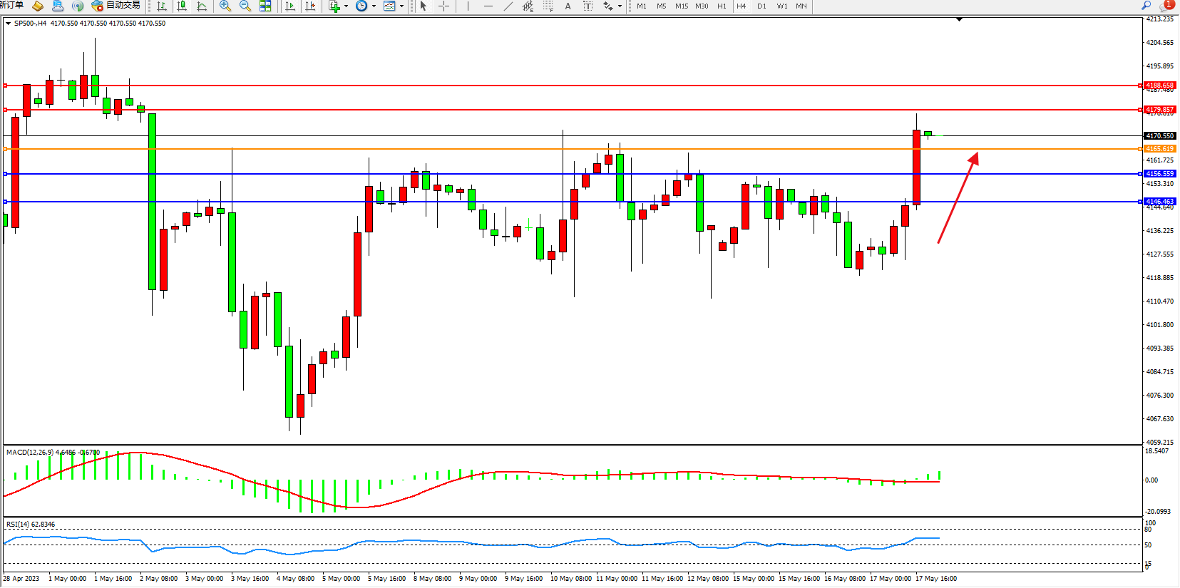 标普SP500——4小时K线图显示: