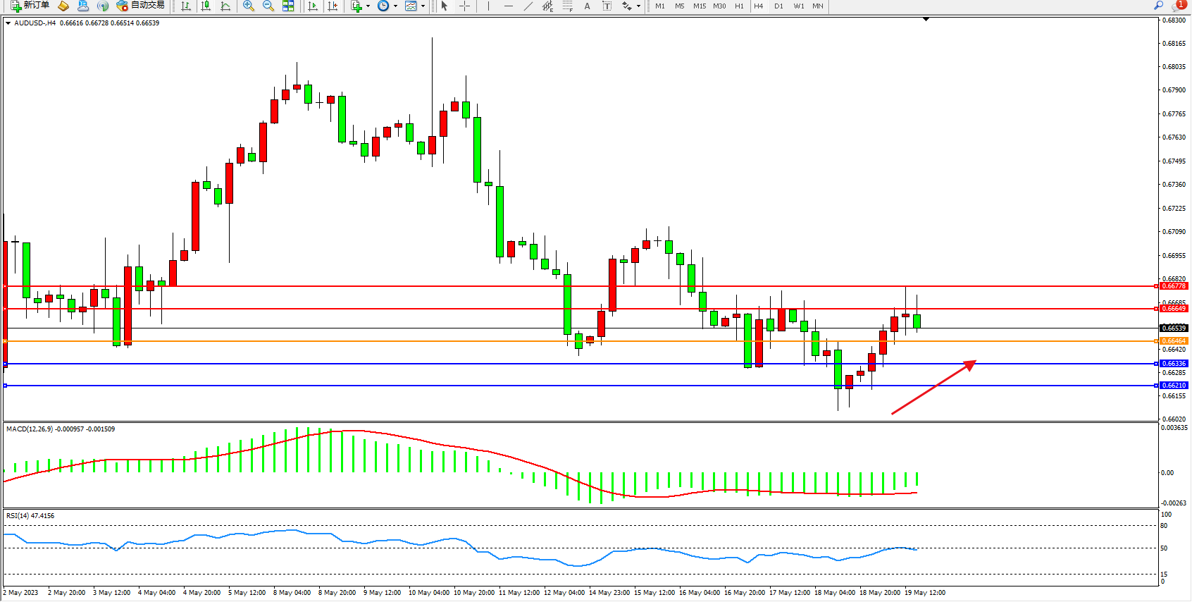 交易策略:0.66464上方看涨,目标0.66649  0.66778