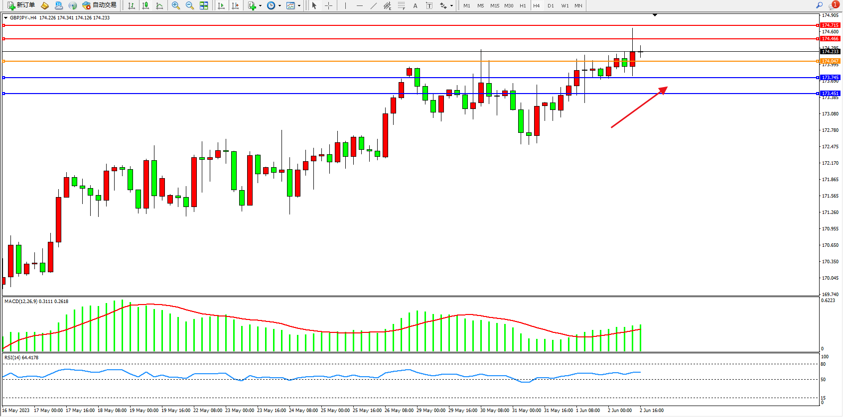 阻力位:174.466 174.715