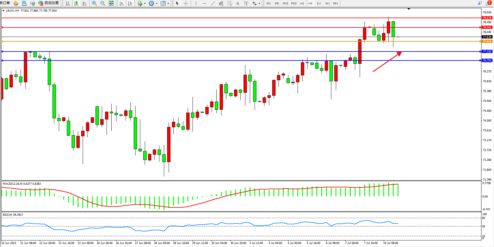 布油UKOil——4小时K线图显示:
