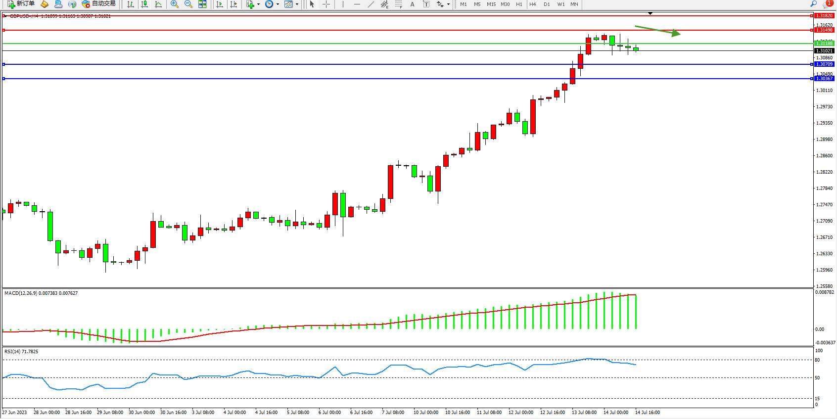 阻力位:1.31498 1.31820