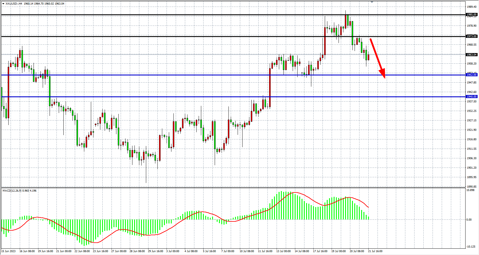 现货黄金XAUUSD 四小时图