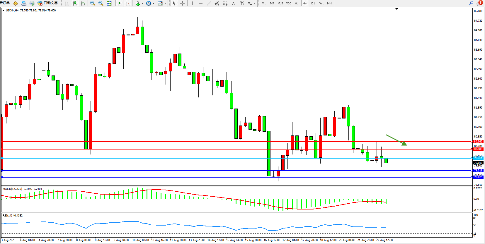 交易策略:79.761下方看跌,目标79.318 79.075