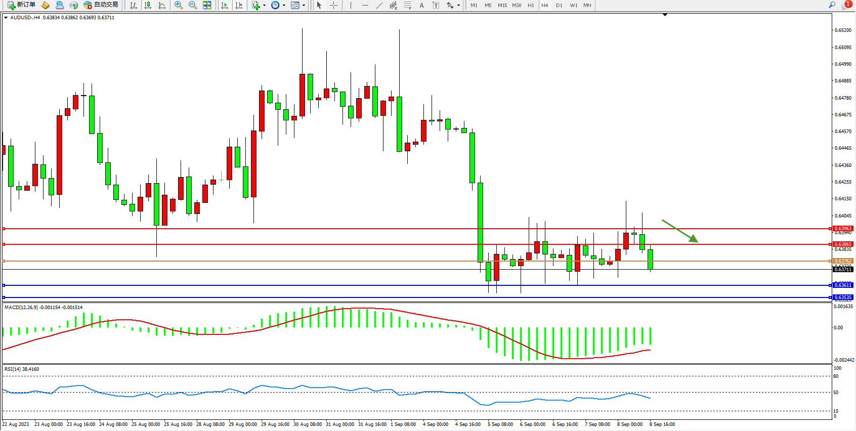 交易策略:0.63762下方看跌,目标0.63611 0.63535
