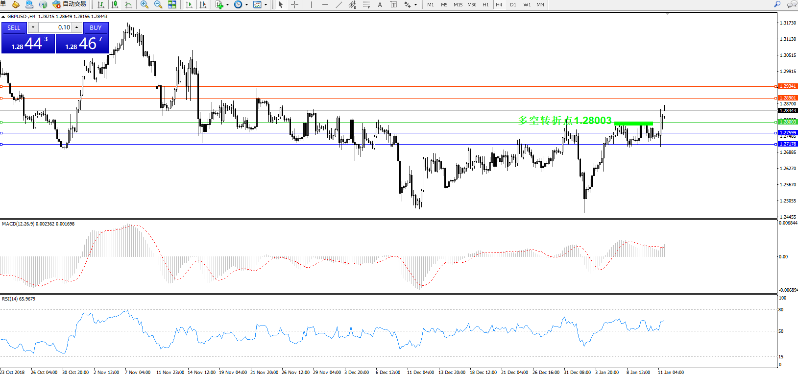 交易策略:1.28003上方看涨,目标1.28901、1.29341