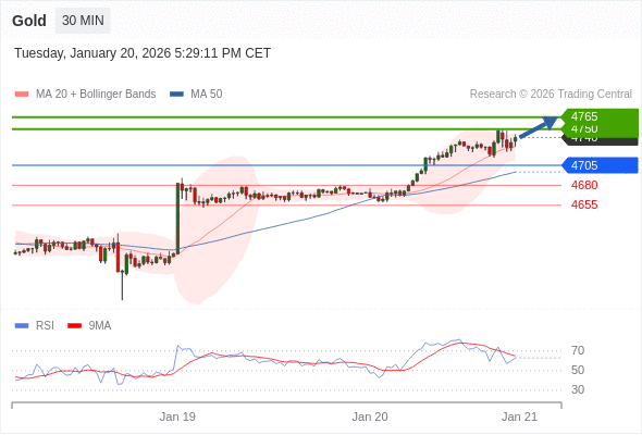 在 4705 之上,看涨,目标价位为 4750 ,然后为 4765 。