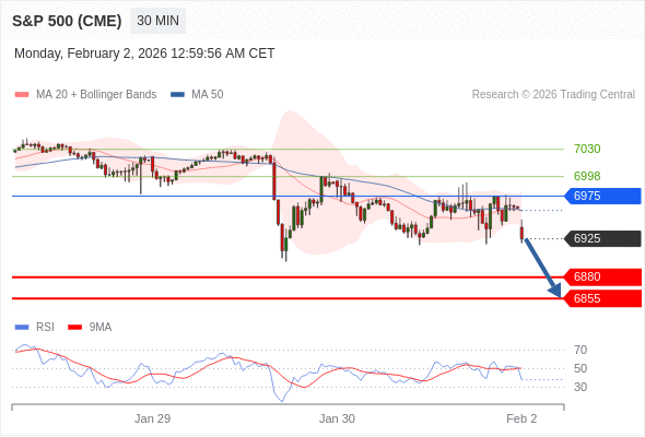 交易策略: 在 6975 之下,看跌,目标价位为 6880 ,然后为 6855 。