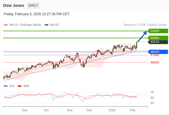 Dow Jones 短线: 进一步上涨。