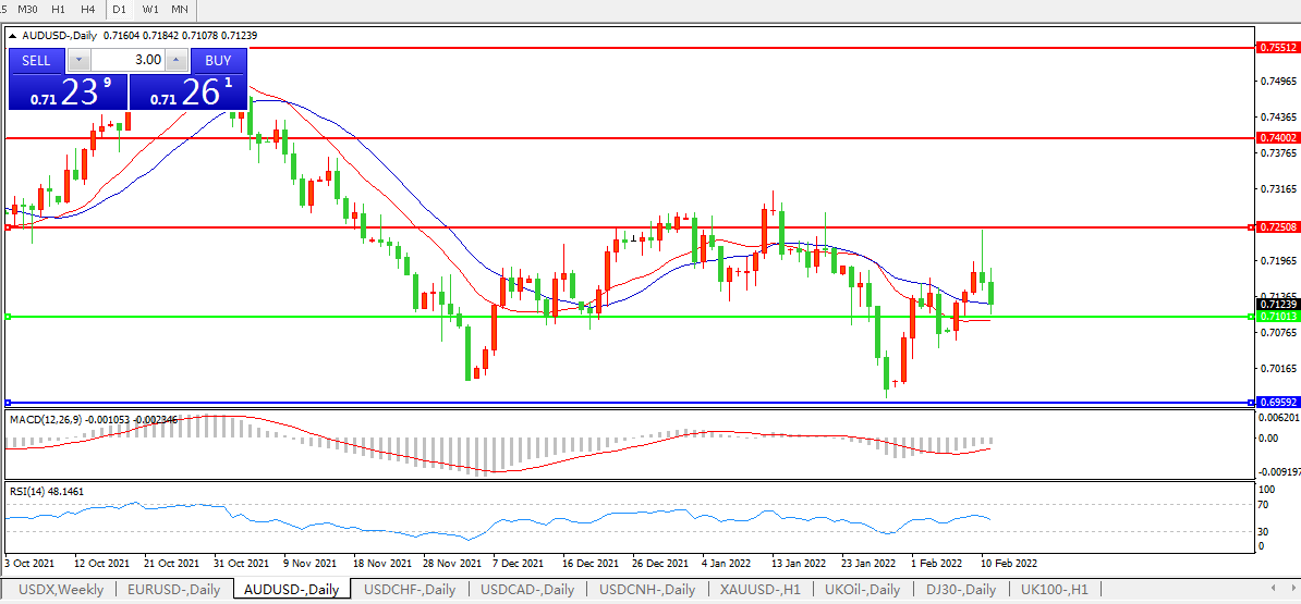 交易策略:0.7100上方看涨,目标0.7250、0.7400