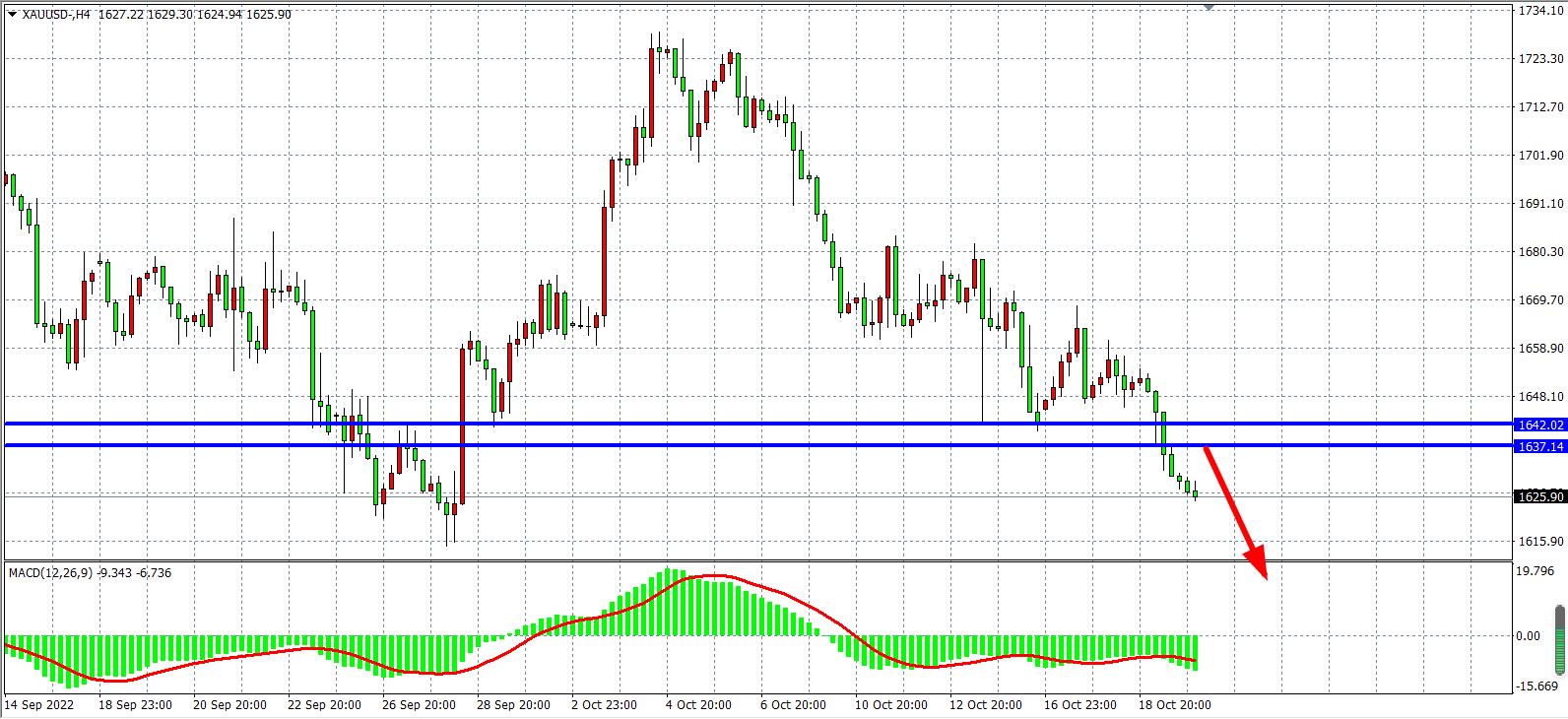 交易策略:在1637.00  之下看跌,目标1615.00         1600.00